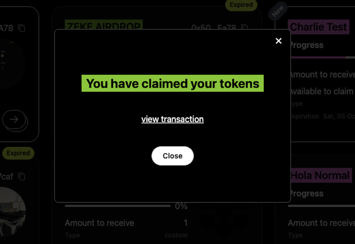 - You will be directed to a screen where you can proceed to claim your tokens.
